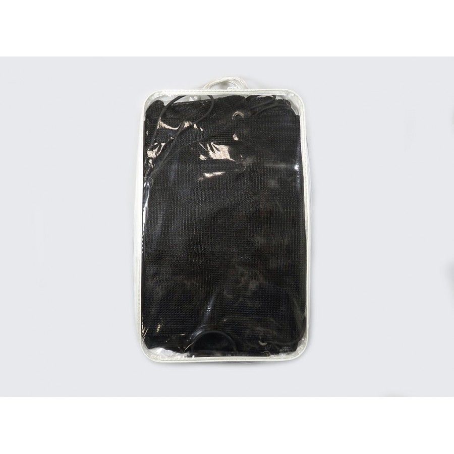 Fijnmazig en luchtdoorlatend net. Voorkomt dat bij het transport van zand, grind en snoeiafval kleine delen worden weggeblazen. Toepassing op personenwagen, aanhangers, pick-ups, en containers. Vervaardigd van polyethylene. Geconfectioneerde en versterkte randen met ogen om de 40 cm en rondom voorzien van elastisch koord 8mm. Verpakt in herbruikbare draagtas.