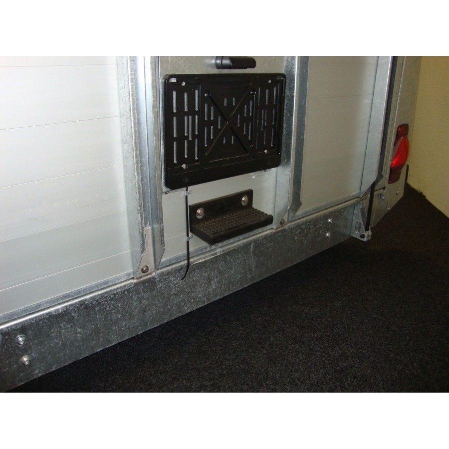 Een opstap op de achterklep van uw paardentrailer om het achterzeil dicht te trekken.