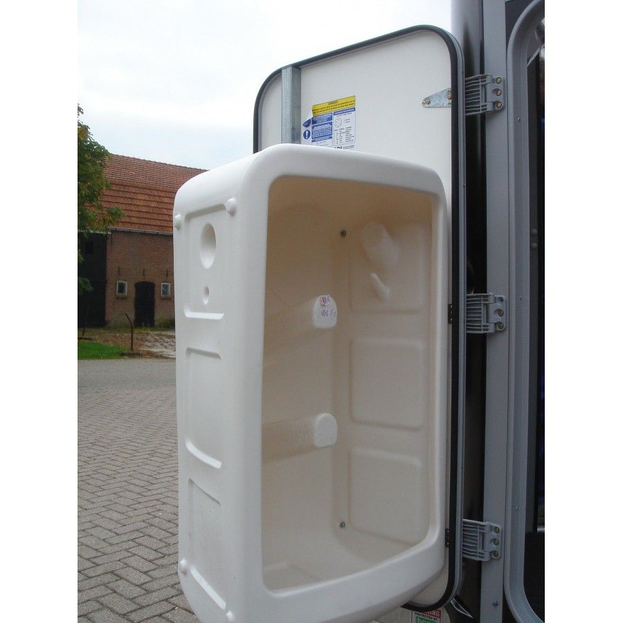 Kunststof zadelkamer. Wordt gemonteerd aan de verzorgingsdeur, en zwenkt mee naar buiten als de deur opengaat.